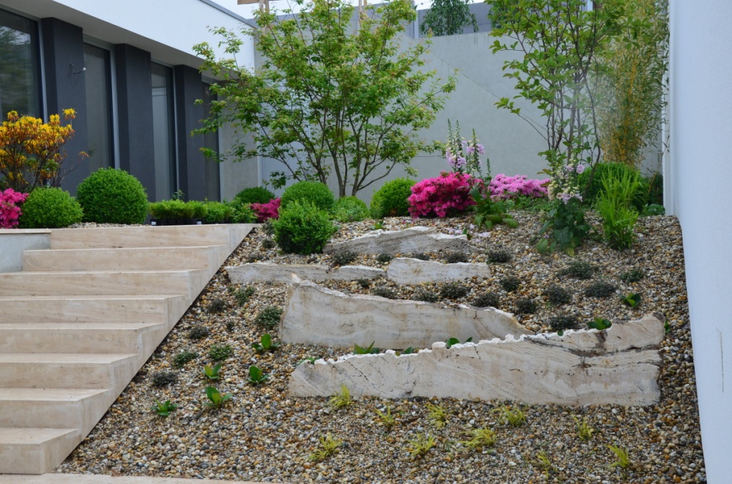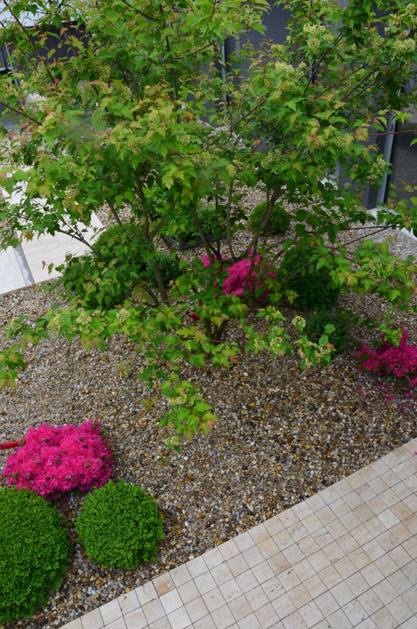 Zahradně architektonická úprava átria. Foceno krátce po realizaci.